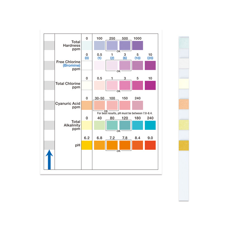 Le kit de bandelettes test piscine 7-en-1 vous permet de contrôler rapidement les paramètres essentiels pour une eau saine et équilibrée : pH, chlore, alcalinité (KH), dureté (GH), nitrites, nitrates et autres paramètres clés.